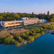 A Budapesttől mindössze egy órányi autóútra lévő hotel méltán népszerű a nyugodt környezetet kereső, kikapcsolódásra vágyó vendégek körében. A közvetlen vízparti elhelyezkedése, az ősfás park nyújtotta környezet, valamint a közel 200 méter hosszú sekély vizű strand biztosítja a gondtalan pihenést. A szálloda konferenciaközpontja 3 különálló épületben fogadja különböző méretű, modern technikai eszközökkel felszerelt termekben a csoportokat.