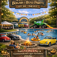 Gyomaendrődi VW Bogár és Busz Party 2026. július 30. és 2026. augusztus 2. között. Az ország legnagyobb Volkswagen találkozója immár 30. alkalommal kerül megrendezésre a hangulatos Liget Gyógyfürdő és Kemping területén. Különlegesebbnél különlegesebb járgányok sorakoznak fel a 4 nap alatt, amelyeket büszke tulajdonosaik örömmel mutatnak meg az érdeklődőknek. A rendezvény egyik leglátványosabb és legvidámabb eleme a városi, vizes–locsolós autós felvonulás, ahol garantált a nevetés és a felfrissülés – szó szerint!