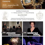Ünnepeljük együtt államalapító Szent István királyunk ünnepét Keszthelyen, a Balaton-parton! Többek között gyermekprogramokkal, zenés produkciókkal, utcabállal, tűzijátékkal, gazdag étel- és ital kínálattal várjuk a kikapcsolódni vágyókat! A rendezvény idén is a csodálatos Balaton-partunkon kerül megrendezésre a mindenki által kedvelt árnyat adó platánfák alatt - a Helikon Szálló és a Mólóra vezető sétány közötti területen.