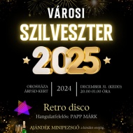Városi szilveszter 2024. december 31-én, kedden 20 órától Orosházán, az Árpád-kertben. Hangulatfelelős: Papp Márk. Ajándék mini pezsgő éjfél előtt (a készlet erejéig). A rendezvény ingyenesen látogatható.