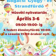 A Bogácsi Gyógy- és Strandfürdő 2026-ban a húsvéti hosszú hétvégén, április 3–6. között is várja vendégeit. Töltse a Húsvétot családjával, és élvezze a pihentető programokat, feltöltődést és teljes kikapcsolódást a tavaszi ünnepek alatt. A fürdő páratlan természeti környezetben helyezkedik el, ahol a gyógy- és élményfürdőzés egyedülálló élményt kínál minden korosztálynak.