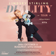Magyarországra jön a világhírű hegedűművész, Lindsey Stirling! A többszörösen díjnyertes és világhírű hegedűművész. Az új albumát, a Duality-t népszerűsítő turné során Lindsey 2024. október 11-én Budapestre is ellátogat, ahol az MVM Dome-ban lép fel. A koncert különlegessége, hogy NYA, a vendégművész is csatlakozik hozzá. Lindsey lenyűgöző előadásai komplex koreográfiával és lélegzetelállító vizuális elemekkel kápráztatják el a közönséget.