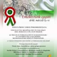 Március 15-e hazánkban ünnepnap és munkaszüneti nap, az 1848–49-es forradalom és szabadságharc emléknapja, amikor a márciusi ifjak bátorságára és vezetőjükre, a lánglelkű költőre, Petőfi Sándorra emlékezünk, aki a szabadságharc és az ifjonti lendület, erő és akarat szimbólumává vált. Megemlékezés az 1848 / 49-es forradalom és szabadságharc évfordulóján Pilisszentiván Fő terén és az iskola aulájában.