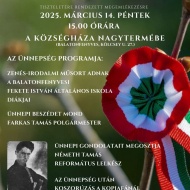 Március 15-e hazánkban ünnepnap és munkaszüneti nap, az 1848–49-es forradalom és szabadságharc emléknapja, amikor a márciusi ifjak bátorságára és vezetőjükre, a lánglelkű költőre, Petőfi Sándorra emlékezünk, aki a szabadságharc és az ifjonti lendület, erő és akarat szimbólumává vált. Ünnepi megemlékezés az 1848/49-es forradalom és szabadságharc tiszteletére Balatonfenyvesen a községháza nagytermében. Az ünnepség után koszorúzás a kopjafánál.
