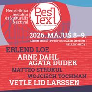 PesText 2026 tavasz – találkozzunk a világirodalommal Budapesten 2026. május 8-9-én. Két nap tele nemzetközi szerzőkkel, inspiráló beszélgetésekkel és személyes találkozásokkal. Várunk mindenkit szeretettel a PesText programjain május 8-9. között a Három Hollóban, Petőfi Irodalmi Múzeumban és Gellért-hegyen!