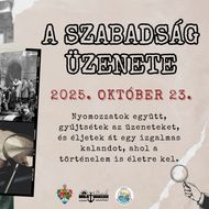 Nyomozzatok együtt, gyűjtsétek az üzeneteket, és éljetek át egy izgalmas kalandot, ahol a történelem is életre kel.A „Szabadság Üzenete” egy izgalmas nyomozós játék, ahol állomásról állomásra haladva kell feladványokat megfejteni. Gyere, nyomozz velünk, és éld át 1956 szellemét közösségi élményként!