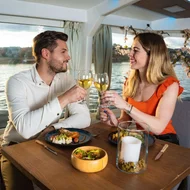 Holdfényes vacsorás hajó Budapesten. Különleges és egyedi élmény, vacsora és borkóstoló hajózás közben. Büféasztalos vacsora korlátlan étel- és italfogyasztással. A hajón hangulatos háttérzene teremti meg az est romantikus atmoszféráját, miközben a nyitott felső fedélzeten fotózási lehetőség is várja a vendégeket. Az este végén minden utast egy apró ajándékkal lepjük meg.