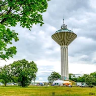 A hegytetőn álló impozáns mérnöki alkotás Győr városának ötödik víztornya. Az első – a Budai úti víztorony - megépítésétől máig 130 esztendő telt el. A Győrszabadhegyi víztorony a József Attila úttól délre eső területek - Győrszabadhegy és Kismegyer városrészek- vízellátását segíti. A környék legmagasabb pontján megépített 43 méter magas torony, 400 m3-es térfogatú víztartályával és az alsó részen elhelyezkedő 500 m3 térfogatú térszín alatti víztárolójával két évtizede látja el Győrszabadhegy és Kismegyer városrészeket friss, tiszta és egészséges ivóvízzel.
