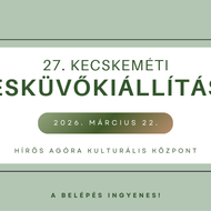 Találkozzunk 2026. március 22-én a 27. Kecskeméti Esküvő Kiállításon a Hírös Agórában! Esküvő Kiállítás a szakma nagyjaival! Bemutatkoznak a helyi és környékbeli esküvői szolgáltatók, itt mindent megtalálsz egy helyen, ami egy gyönyörű esküvő megszervezéséhez szükséges. A kiállítás INGYENESEN látogatható!
