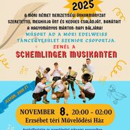 Márton-bál Móron, az Erzsébet téri Művelődési Házban 2025. november 8-án 20:00 órától. Műsort ad a móri Edelweiss Táncegyesület Senior csoportja. Zenél a Schemlinger Musikanten. Jegyvásárlás és asztalfoglalás kizárólag személyesen, érkezési sorrendben a Lamberg-kastély 53-as irodájában október 20-tól lehetséges.