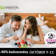 Előfoglalási akció Hévízen - Kedvezményes szállásfoglalási lehetőség a Glamour napok keretében 2025. október 9-12. között a a Bonvital Gastro & Wellness felnőttbarát szállodában. Csak 3 nap! Ebben a három napban kedvezményesen foglalhatod le év végi pihenésed. Korlátlan wellness és spa használat, félpanziós ellátással 2 fő, 2 éjszakára csak 79.900Ft.