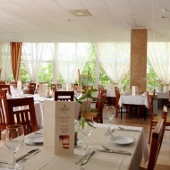 A klimatizált éttermünkben büféasztalos rendszerben nemzetközi, magyaros és tájjellegű ételkínálattal, illetve a`la carte menüvel várjuk kedves vendégeinket. Konyhaséfünk, Veress Ferenc munkája garancia a színvonalas ellátás, valamint a rendezvények, állófogadások, bankettek gasztronómiai hátterének biztosítására.