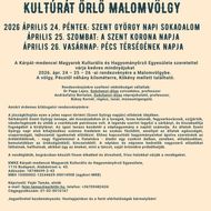 Kultúrát Őrlő Malomvölgy fesztivál 2026. április 24-26. között Pécsen. A háromnapos rendezvény a hagyományőrzés, a népzene és a közösségi élmények ünnepe, ahol a látogatók a magyar múlt értékeivel találkozhatnak. A gazdag fellépőlista és az autentikus hangulat igazi időutazást kínál a résztvevőknek.