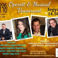 Indítsd 2026-ot egy felejthetetlen operett–musical és táncos vacsoraesttel Monoron! A Petrovai Pince Rendezvényház színpadán kiemelkedő művészek – Tóthfalvi László, Bojtos Luca, Kiss Zoltán és Schmidt Henrik – gondoskodnak a varázslatos hangulatról. A vendégeket ízletes cordon bleu vacsora és egy pohár ital is várja. Hangulat, élmény, ízek – minden adott egy különleges estéhez, ne maradj le, foglalj mielőbb!