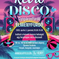 Fergeteges retro discoval és éjszakai fürdőzéssel várja vendégeit a Gyopárosi Élményfürdő 2026. április 3-án 20:00-24:00 óráig. Indítsa a húsvéti hosszú hétvégét a '80-as, '90-es és 2000-es évek slágereivel egy fantasztikus esti fürdőzés keretében. Hangulatfelelős: DJ Kuky. A program élményfürdő belépővel látogatható.