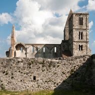 A középkori magyar építészet egyik legszebb emléke a XIII. sz. első felében épült, francia hatásokat tükröző, későromán és kora gótikus stílusjegyeket egyaránt magán viselő monostortemplom romja. A Kőtár állandó kiállítása felidézi a templom és a régi korok emlékét. Tetejéről páratlan kilátás nyílik a Zsámbéki-medencére.