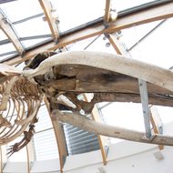 A főbejáratnál a Fogadótér kupolájában egy barázdás bálna felfüggesztett csontváza alatt léphet be a látogató. A nálunk látható példányt 1896-ban ejtették el az Atlanti-óceánban, az ipari méretű bálnavadászat fénykorában, majd 1900-ban Bécsből, 4000 aranykoronáért vásárolták meg. A koponyán látható égésnyomok az 1956-os tűzvész során keletkeztek. Az egyik állkapocsfél évek óta a Természetbúvár-teremben ejtette ámulatba a kicsiket és a nagyokat egyaránt. A csontváz súlya mintegy 2 tonna, ebből csak a koponya kb. egy tonnát nyom. A múzeumban először látható a teljes csontváz. A Magyar Természettudományi Múzeum új főbejáratának tervezése a csontváz alakjának figyelembevételével történt, ezért a kupola aszimmetrikus. A váz felfüggesztése speciális tervezést és állványozást igényelt. A gerenda 10 felfüggesztési ponton tartja.