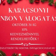 Közeledik az idő, amikor mindannyian elkezdjük beszerezni a karácsonyi ajándékokat, megrendeljük a céges karácsonyi ajándékokat! Lepd meg idén a számodra kedves embereket, ügyfeleket prémium minőségű, egyedi, kézműves csokoládékkal! Rendelésedet add le még október 31-ig, hogy 10% kedvezménnyel kapd meg a csodás bonbonokat! Legyen idén csokoládé a karácsonyfákon is!