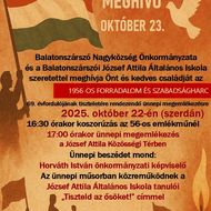 2025. október 22-én 16.30 órakor az 1956-os forradalom és szabadságharc 69. évfordulója alkalmából ünnepi megemlékezést rendeznek Balatonszárszón. Koszorúzás az 56-os emlékműnél, majd 17.00 órától a József Attila Közösségi térben folytatódik az ünnepi megemlékezés. Beszédet mond: Horváth István önkormányzati képviselő. A műsorban közreműködnek: a Balatonszárszói József Attila Általános Iskola tanulói.