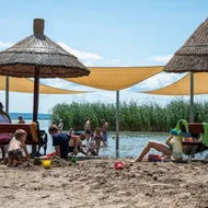 Ez a strand egy újabb gyöngyszem a vadregényes északi part és a gyorsan mélyülő víz kedvelőinek a Balaton északi partján. Az Ábrahámhegyet hajdan kettéosztó Burnót-patak, a Káli-medence kapujában, a malom-völgyben éri el a falut, és torkollik a strand szomszédságában a Balatonba. Az északi part talán legszebb és legjobb adottságú strandját hozva létre, ugyanis a Burnót-patak apró homokszemcsés hordaléka homokfövenyt alakított ki a strand területén. A területet szépen gondozott pázsit borítja sok nyitott felülettel, de bőségesen találunk árnyékot adó fákat is. Gyerekeknek néhány éve biztonságos lídós részt alakítottak ki a part egyik részén.